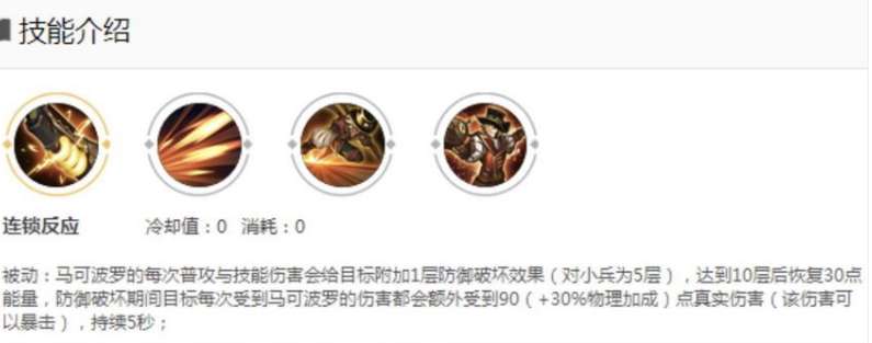 马可波罗的每一次的普通攻击都会发射出俩发子弹,并且每一发子弹都有着额外的伤害附加。如果普攻命中敌人将给目标施加一层防御破坏效果,一旦叠加满10层效果将直接回复马可波罗30点能量值。