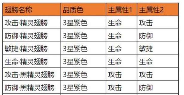 收集来的羽毛可以进行翅膀的合成。白色为[精灵翅膀]主属性为生存;黑色为[黑精灵翅膀]主属性为攻击。