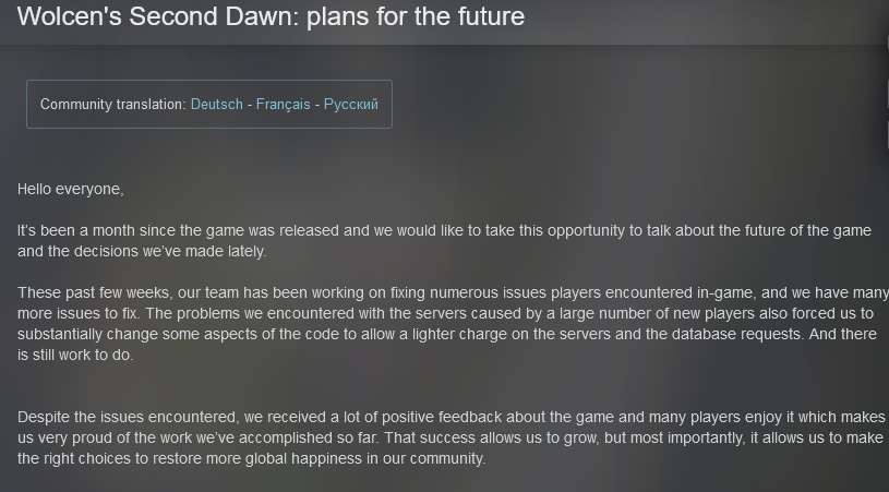 “尽管游戏出现了不少问题,但是玩家们还是给与我们一些非常积极的评价,这使得我们对自己的工作感到十分自豪。《破坏领主》的成功可以让我们继续成长,甚至是扩大规模。不过,眼下最重要的事情,就是解决游戏中出现的各种问题,让全球玩家都能尽情享受游戏。”