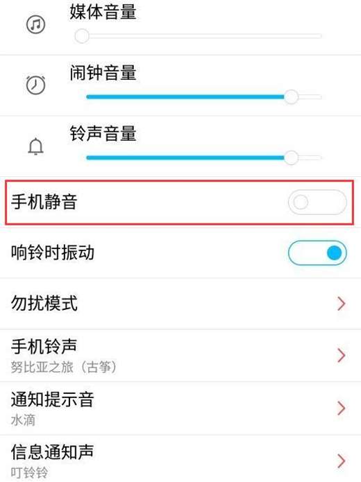 3、在声音菜单下可以看到【手机静音】选项,最后点击打开该选项即可。