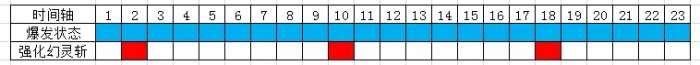 由于月魄最大的伤害在闪避撞人→强化幻灵斩上,这招CD最短8秒;除去开大后僵直1秒,于是我们在对应的2秒、10秒、18秒做一个标记。