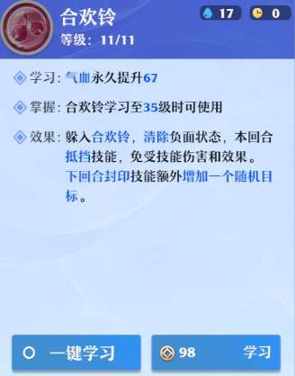合欢的主要群体输出技能,挂机技能,也算是一个群封技能(前提是得花1-2回合叠印记)