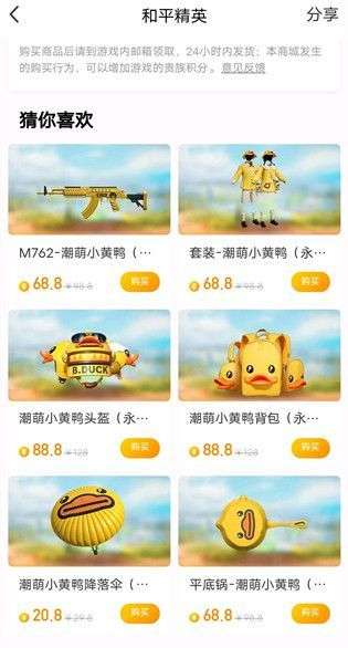 如果玩家发现了在道聚城当中给出的猜你喜欢里出现了如上图所示的小黄鸭系列装扮,就可以选择付费购入。