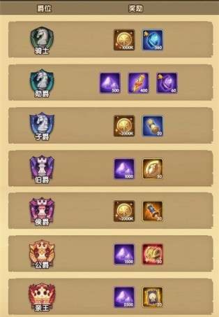 在囚时之界的征途中,完成任务可以提升爵位,获得相应的丰厚奖励!爵位奖励表格如下: