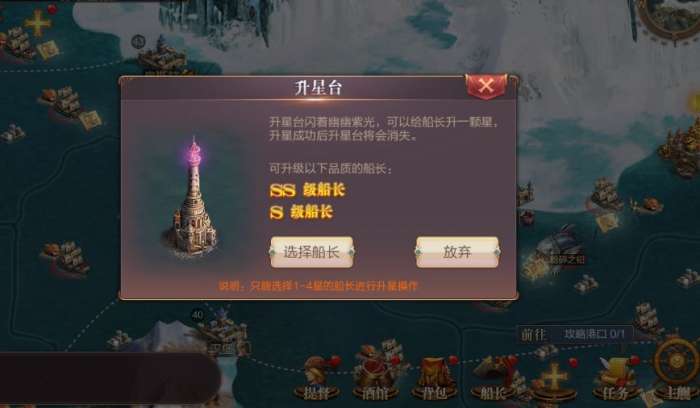 升星台是最快捷的升星方式,可以无消耗的直接给拥有的船长升一颗星。