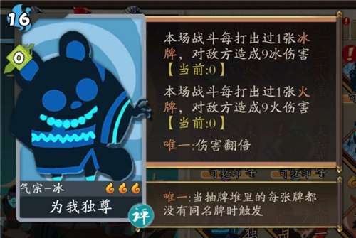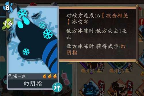 隐藏秘籍为我独尊,三星9*x*2点的伤害(x为冰火牌数量),如果我们用气宗面板流加幻阴指加为我独尊,伤害为:(16+a)x+9*x*2点伤害!