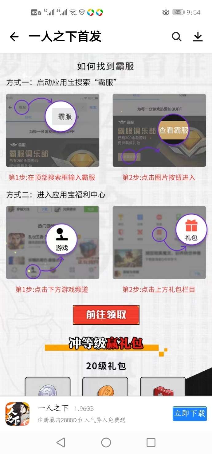 其实这个是应用宝玩家专属的福利哦,需要在应用宝上下载一人之下游戏