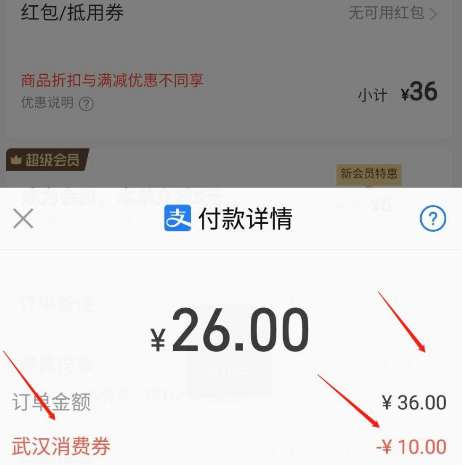 第五步,进入外卖页面,选择需要下单商品,支付时金额将自动减去消费券面额,如图所示: