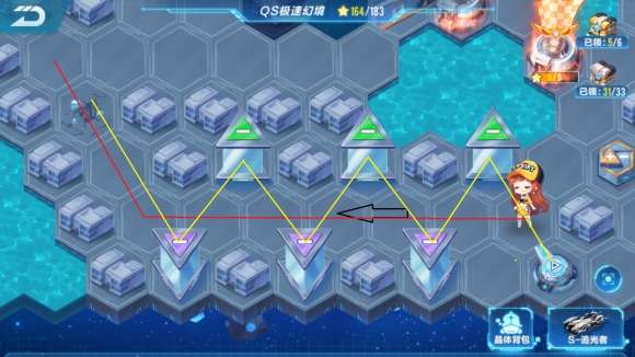 红色折线为激光炮路径,注意三个升降台的状态,也是需要提前调试好的~
