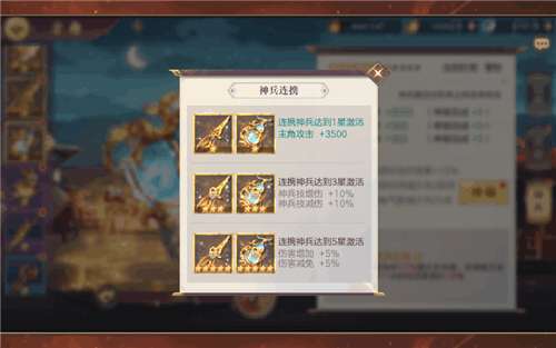 神兵的初始加成为全体生命+3000;全体攻击+500;全体防御+300