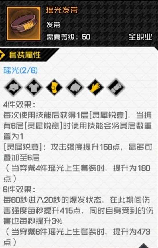 2.六件套效果增伤效果很强,每30秒就有10秒的爆发,10秒内增伤33.5%,这件套装适合技能有较长的前摇和打爆发的角色使用。PS:六件套和四件套差距很大的哦。