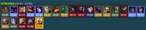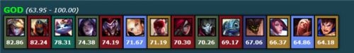 从榜单可以看出T1级别英雄大多是技能CD较短且技能输出较高的英雄,远程英雄有光辉、EZ等POKE能力强大的英雄,敌人经常还没有近身就已经残血了,当然还有充足控制的小法师,收割能力级强的卡特、劫与小鱼人,这些英雄的评分都在63分以上,是无限火力的佳选择之一。