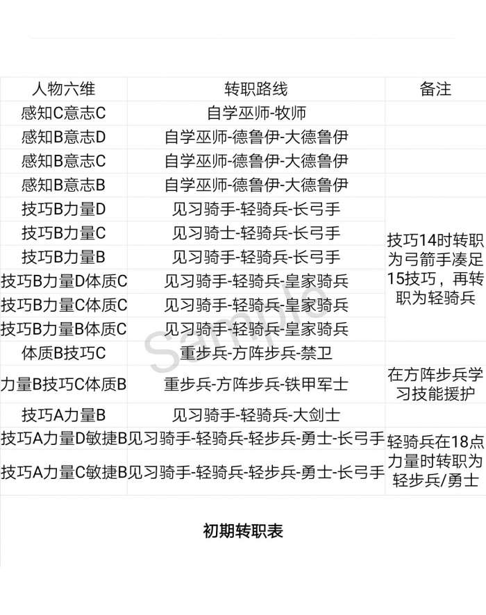 技巧A力量D敏捷B见习骑手轻骑兵轻步兵-勇士长弓手轻骑兵在18点