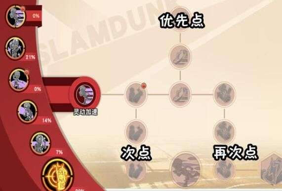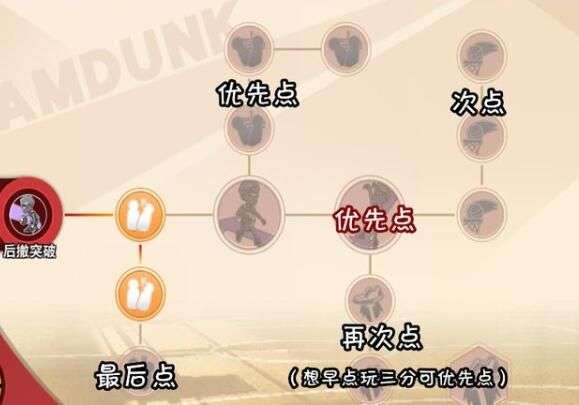 接着就是抗晃倒,那个是宫益的对抗阿牧的利器,也要尽早点出来。最后,如果你想早点玩三分,那就优先点一些与三分有关的动作与天赋。