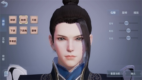 在《剑侠情缘2:剑歌行》中,个性化容貌订制包括面部、五官和妆容三大部分,每个部分对应脸部的不同部位,少侠们可通过对这些部位进行调整,打造属于自己的独特外貌!以面部轮廓为例,游戏提供颏颔、脸颊、天庭、下颌、颌角、颧骨、脸肌七个自定义维度,调整范围、结果实时可见。