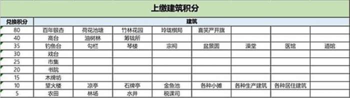 其中玩家可以使用琴楼、勾栏、宗祠这些,可以折合大概就是35点积分。