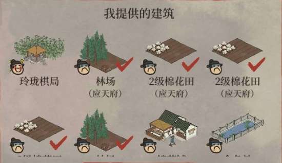 一般来说玩家可以利用[石碑] [水槽] [小花园] [不用的摊位] 这些比较容易获取的装饰性建筑来进行兑换,如果数量不够的话,可以搭配上一个[集市]或是[琴楼],这两个建筑换价较高,比较节省建筑仓库的空间。而月卡玩家利用仓库无上限的优势可以提前攒告示牌白嫖。