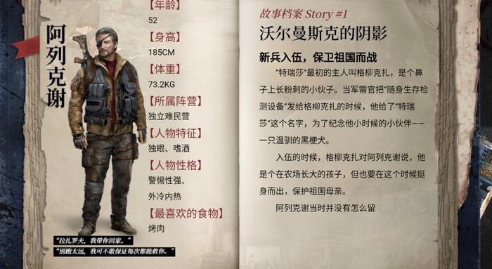 最近《明日之后第二季》更新了,相比众多新的游戏环境和丧尸,老玩家们注意到了本次更新中出现的一个人物“阿列克谢”,就是在新人指导时出现教我们基础操作并最终为掩护我们而下路不明的那个独眼大叔。
