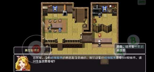 当然,他也卖消耗品,旅馆可以特殊服务(buff是全属性+5),至于楼梯下那三个人,我觉得是信息龙套。