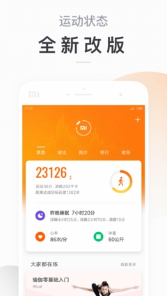 小米运动为你提供精准的运动数据记录,丰富的健身训练视频,详细的睡眠及运动分析。绑定更多的可穿戴设备,激励你爱上运动,享受积极健康的生活方式,迎接更加美好的自己。