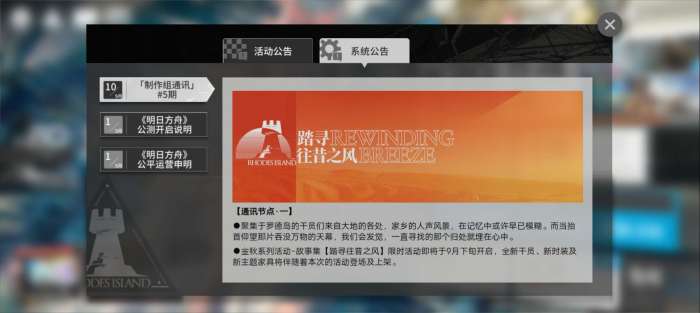 按鹰角的习惯,在属于SideStory的夏季活动后的九月下旬安排微型故事集并不让人意外。本次故事集标题为【踏寻往昔之风】,结合通讯里的描述“干员们来自大地的各处,家乡的人声风景,在记忆中或许早就模糊”来看,很可能会讲述来自几个不同地区的干员的过往以及他们家乡的情况,让各位博士对泰达大陆的风貌以及这些干员能有更深入全面的理解。而除了“不为人知”的故事外,新干员、时装和主题家具也会随之登场。
