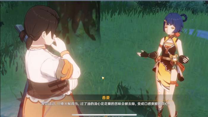 经过了千辛万苦,终于把食材找齐了。回到清泉镇的时候,还要帮助香菱“打下手”,做做汤品辅料什么的。在制作食材的时候,还要临时去找很多的食材,找到了之后还要帮香菱灭火。当时我在做这个任务的时候,我已经迷乱了,整整做了两天才做完这个任务。当时,我就在想,两天过去了,这做的食材都馊了吧!