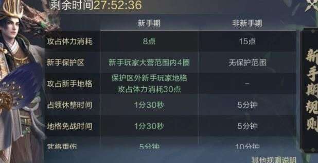 建号后48小时内,处于新手期,享受新手期福利,其中比较重要的有:武将体力消耗减半、休整时间90秒、武将下阵预备兵完全返还、技能拆解100%返还武技点。下面给大家介绍下如何利用这些福利:1. 体力消耗减半:这个无需多讲,让主力武将更持久。2. 休整时间90秒:等待的时间更短,能让我们可以频繁的去打地。3. 武将下阵预备兵完全返还:可以利用这个,将体力消耗光的武将下阵,把预备役给其他体力多的武将继续打地。(小技巧:可以在要塞征兵,然后回到主城下阵,变成预备役,然后继续去要塞征兵,这样兵源不会断。)4. 技能拆解100%返还武技点:武将下阵后,把他的技能重置掉,重新加到上阵的武将身上去,继续推地。Ps:一般采用的是主队体力消耗完毕后,就将他们下阵,把技能重置,然后上阵二队,把技能给二队的武将并升级技能,继续推地,然后无限重复以上步骤。