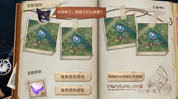 题目是“你回来了,发现了什么异常”,其实就是问灵影刻印后发现的异常点,选项是三个,这个建议玩家选择有奇怪的虚影。