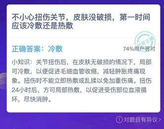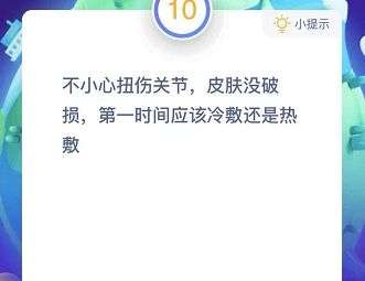 不小心扭伤关节,皮肤没破损,第一时间应该冷敷还是热敷这个问题是蚂蚁庄园12月13日的最新题目哦,受伤了之后到底要如何选择冷敷热敷呢,具体答案现在就来告诉给大家吧~