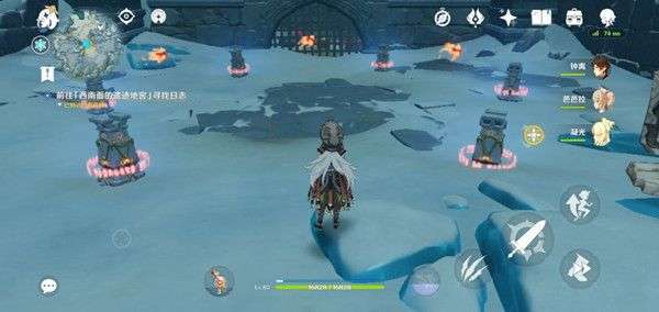在西南面的遗迹地窖,玩家将会遇到如图所示的机关解密挑战,需要想办法让三个火仙灵点燃所有的石柱。
