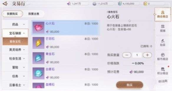 ①云垂万事屋:日程中每日必做推荐的云垂万事屋是获取紫色宝石的重要途径