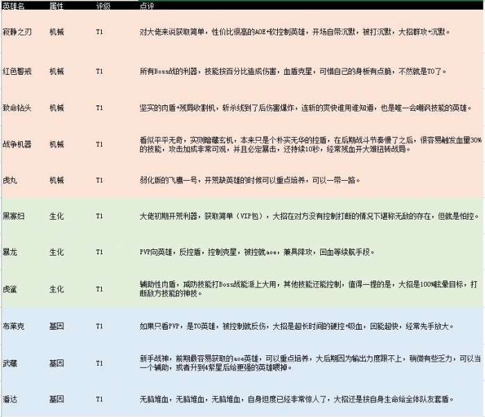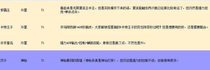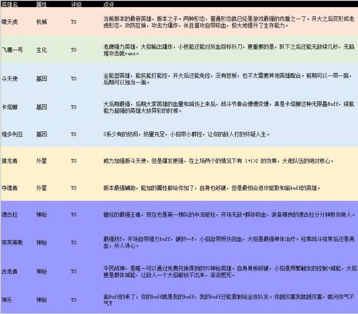 不休战队英雄排行大全