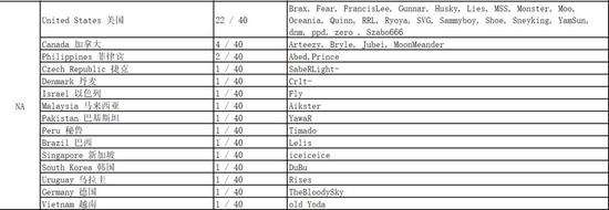 其它赛区或多或少都有外援的加盟,而唯一一个出现从别的大陆不远千里来抢肉吃的情况的赛区是北美。正如大家之前常玩的一个梗——“美国俱乐部EG由加拿大一号位、菲律宾二号位、新加坡三号位、丹麦四号位和以色列五号位组成”——所说的那样,有2支从海选一路杀入S级联赛的队伍北美人少于外援(注:因为凑不齐8支直邀定级赛的队伍,北美赛区的定级赛中有4支队伍来自海选,这意味着北美赛区是唯一一个可以通过海选直达S级联赛的赛区)。这个赛区共有14名选手来自于北美之外的国家,而这14名选手又分属13个国家。确实,北美DOTA的凋零给了不少其他赛区选手逐梦的机会,而在北美又没有那么严重的语言问题。这个情况,多少有点让人想起了当年的淘金热。