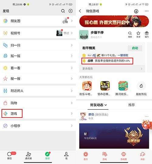 第一步:首先需要玩家进入微信,选择【游戏】,然后在里面找到和平精英,点击【战绩】。