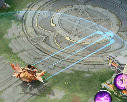阎魔命令鬼魂朝指定方向飞行,对路径上的敌人造成法术伤害,若命中敌方式神,则鬼魂会散向四周,对范围内的其余敌人造成法术伤害。