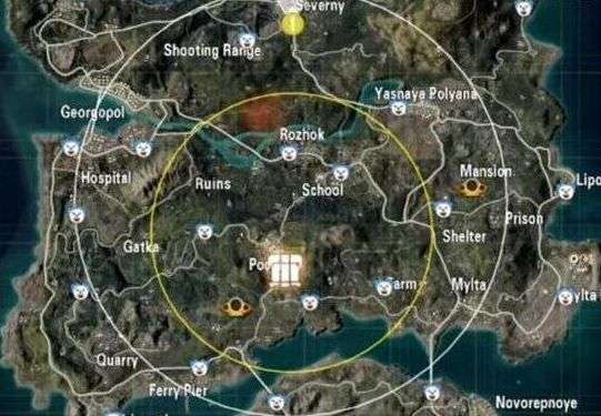 缩圈战略信息:在小地图上,显示下一个圈的位置。