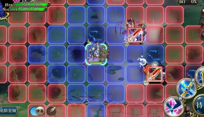 羽柴踩蓝色圈会提高射程,这个开局先不要急着去踩,等到处理完迦游罗后再去踩圈攻击波赞鲁,不然波赞鲁会不停使用瞬移导致没法攻击到他。