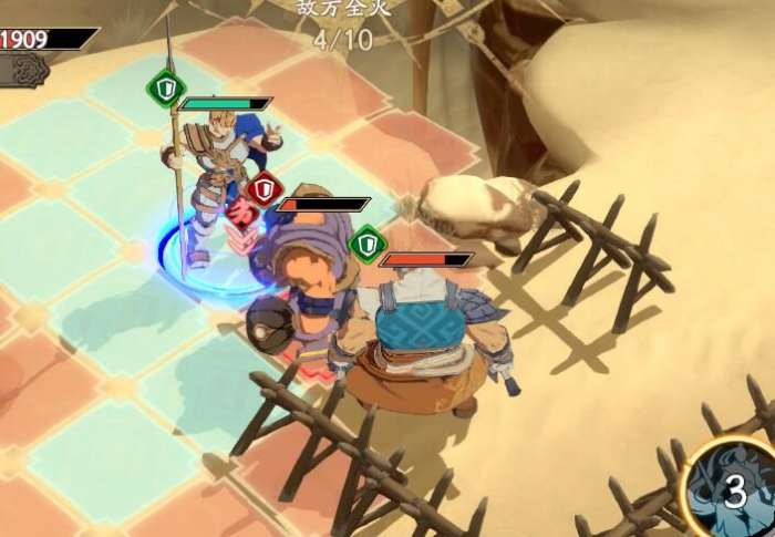 古伦德上去用技能打盾,冰璃技能打盾怪,再动去秒刺客,璇玑补掉盾怪,夏侯往前走