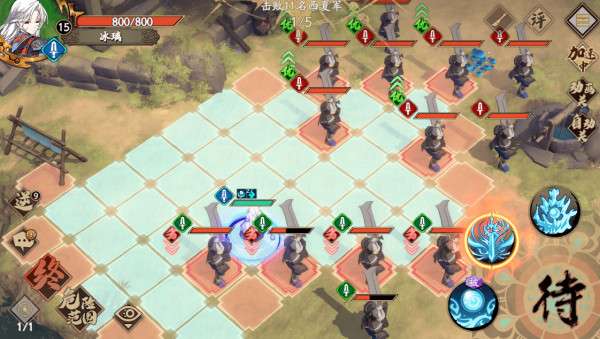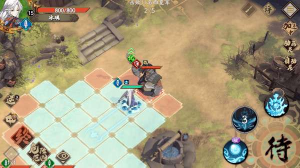 穿越后因为冰璃的天赋剑使威仪可以再次移动,这时候我们走到最右边小兵堆里释放大招,秒杀所有火属性小兵