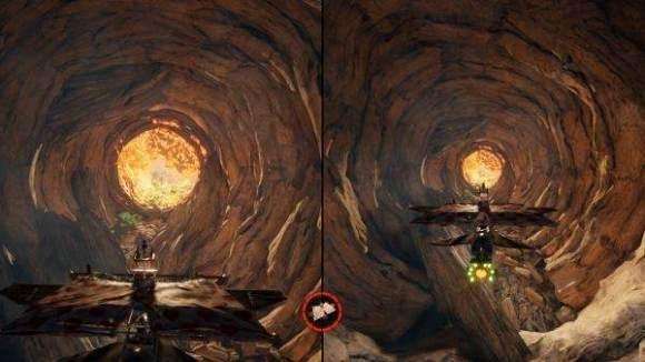 于是尽管两人还是相互心生嫌隙,却不得不写手合作踏上冒险之路——从这里开始进入了可以掌控的环节,需要注意的是本作在95%以上的时间都会是左右分屏的玩法,你只需要注意属于自己的那一侧即可,但另一方面,时刻注意队友的屏幕场景可以让你在进行需要合作的内容时能够达成更好的默契。