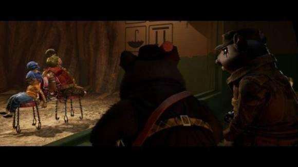 想象力向来是这种“童话”风格故事最好的润色剂:松鼠&蜜蜂章节毫无疑问将这一点体现的淋漓尽致,松鼠们不仅仅是盗窃各种物品,还用“机械朋克”的方式完成了自己的“文明化”,在游戏中父母被松鼠用玻璃瓶陷阱抓获以后,安排他们去对付作为世仇的黄蜂敌人,给与的武器就是用树脂作为弹药的喷射枪和用火柴作为弹药的“狙击枪”,两者配合就可以产生“燃烧”的效果,甚至这些松鼠还偷了夫妻的内裤用来制作“滑翔机”。