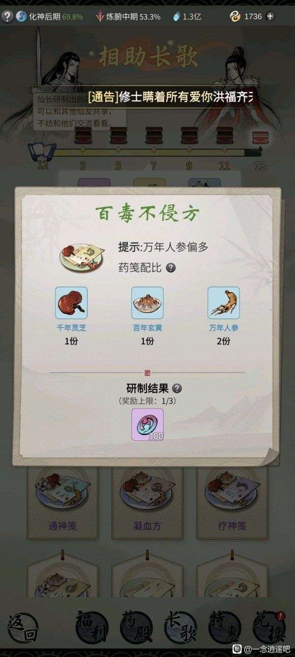 一念逍遥药方是什么?一念逍遥药方公式多少?相助长歌活动中需要制作各种药品,通过炼药的形式来获取丰厚材料奖励哦,这些药方内容不少玩家不太清楚吧,下面就来详细分享给大家吧,目前最全面的有16种哦,快来看看吧~