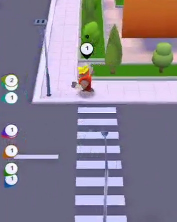 1.游戏初始状态是1个小人,开局之后,点击屏幕移动小人前进,方向控制对应移动屏幕的方向,游戏的目的就是发展自己的队友,只要接触别的小人就会变成和自己一样的颜色,这样就成了自己的队友;