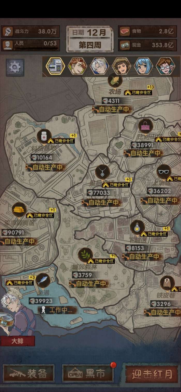 选完后去黑市买卖货物,继续搜索工业区,食物充足的话可以继续把人派到铁皮巷。