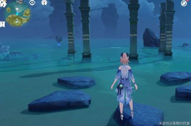 这是最右上的那个水潭。飞过去以后会发现没有水,要往上爬一段山体,打破那个石头就会有水流出来了。其他位置正常可以踩踏石板。