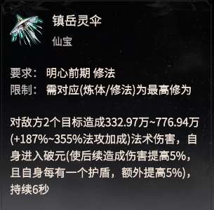 不同的仙魔法宝有不同的擅长之处,有的擅长进攻,有的擅长护盾,可供各位仙友根据不同挑战进行搭配使用,具体请看下文