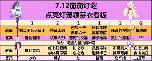 崩坏学园2夏影灯谜答案解析