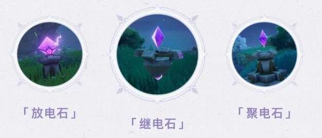 如果「放电石」放出的电流能顺利传导至「聚电石」,或许可以得到意外的收获。当放电石与聚电石距离较远时,旅行者们可以选择合适位置放置继电石,对电流进行传导。