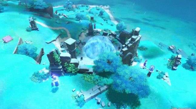 也就是说,整体的机关玩法就是调整好「御引磐座」和「雷承之鉴」的角度朝向,最后通过攻击「御引磐座」产生电流,将其传导至攻击到结界,这样一个环环相扣的解谜内容。