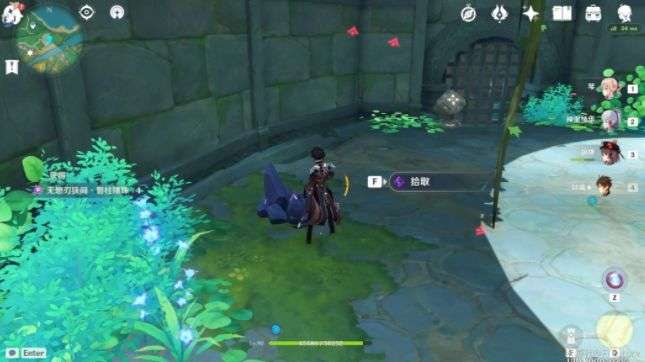 按派蒙所说,我们在附近用元素视野观察一下元素逸散的情况吧。果然,在镇物周围出现了指引的元素波动,跟随指引去寻找镇物吧。